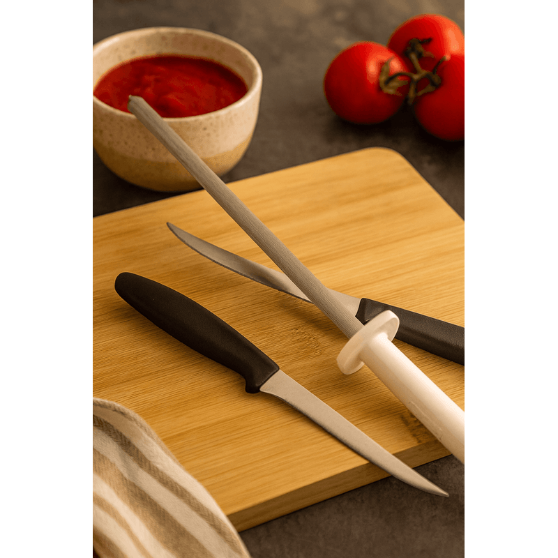 Chaira Lisa de Cabo Branco Aço Carbono Com Argola 14" - Mundial