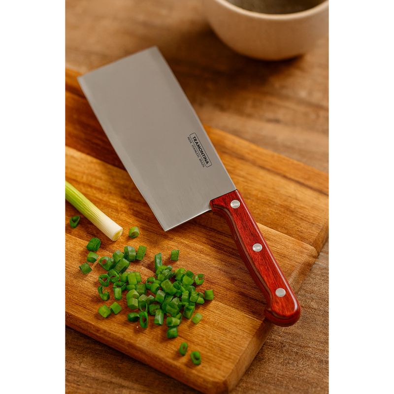 Cutelo Oriental em Aço inox com Cabo Vermelho em Madeira Polywood 7" - Tramontina