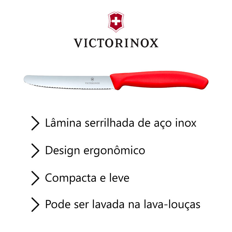 FacasCozinhaTomateFaca Universal Cabo Vermelho com Serra 4" Swiss Classic - Victorinox