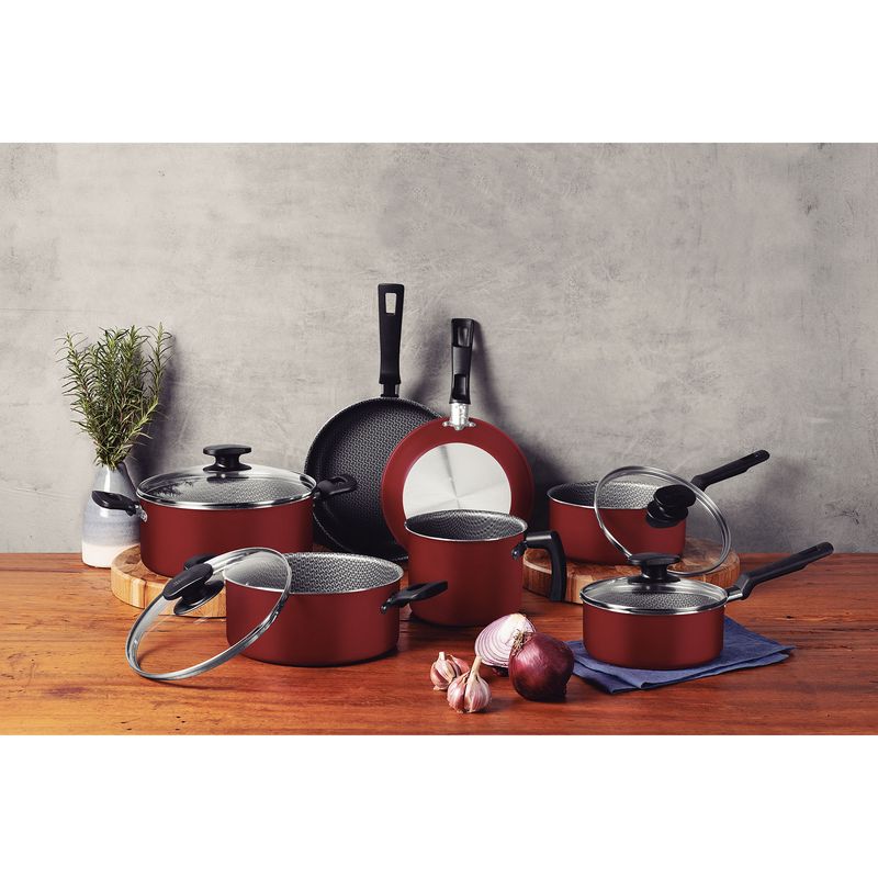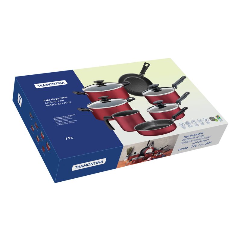 CozinhaOutrosPanelasJogo de Panelas Loreto em Alumínio com Revestimento Interno e Externo Antiaderente Starflon Max com Cabos e Alças Vermelho 7 Peças - Tramontina